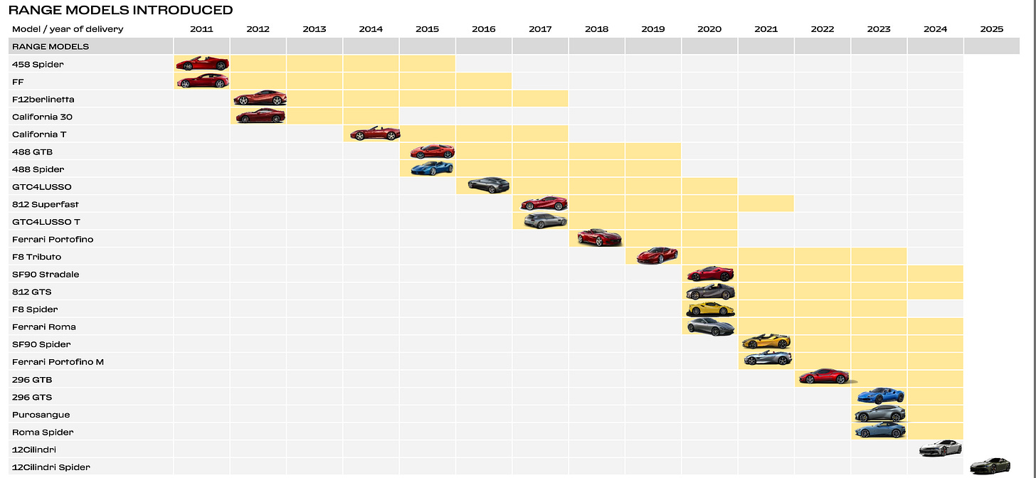 In the luxury performance market, constantly introducing new models is crucial. Ferrari has recently benefited greatly from its rich product mix.