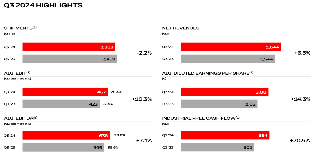 Ferrari: 3,383 units sold, €467 million operating profit (28.4% return on sales)
