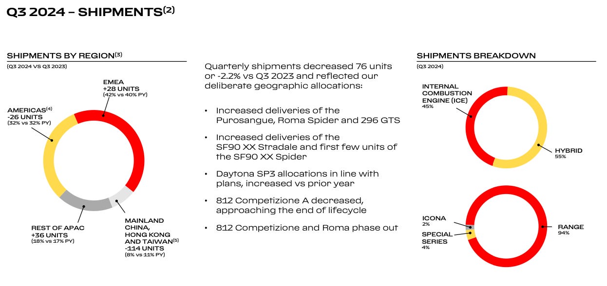 There were also supply chain constraints in early 2024, affecting certain specialty materials used in high-end customization options. However, Ferrari reallocated production resources to prioritize higher-margin models, ensuring that revenue continued growing despite flat shipment numbers.