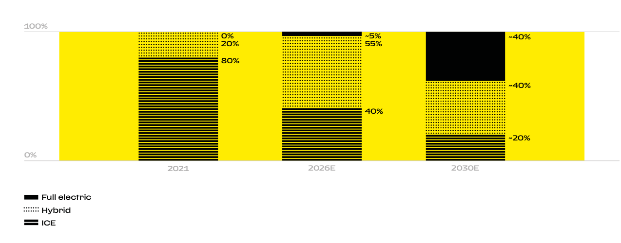 Higher-margin hybrid models, which have become increasingly dominant in the product mix.