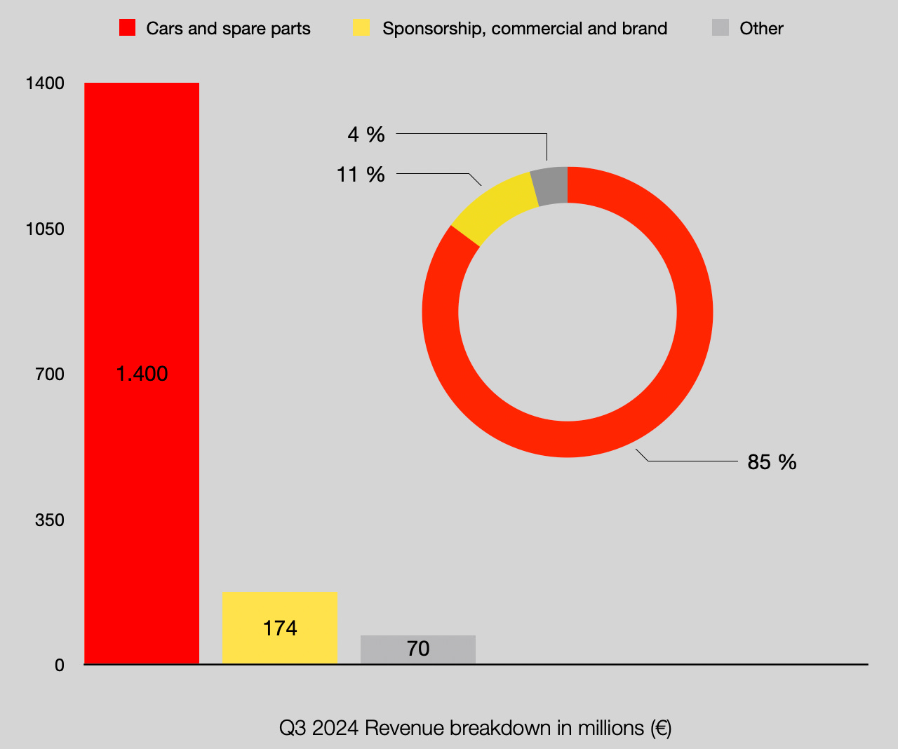 The biggest pillar comes from cars and spare parts, accounting for over 85%! This is a significant share, but not surprising. Cars and spare parts not only include the sale of new cars - in the last quarter, personalization (specific customer requests, an area where Ferrari offers a lot) accounted for approximately 20% of the total revenue.